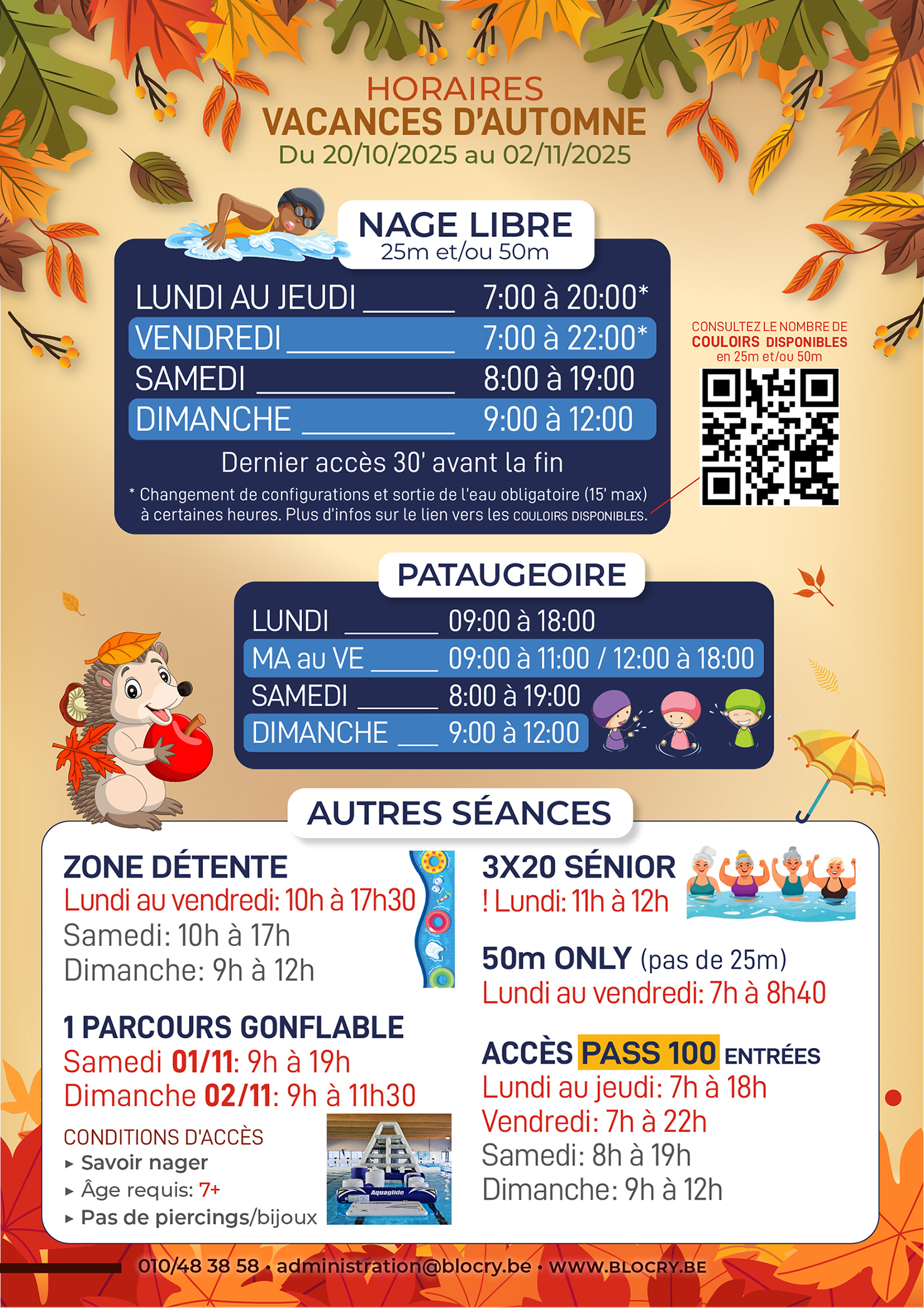 ! Les pass de 100 entrées sont valables (hors vacances scolaires et jours fériés => horaires adaptés):