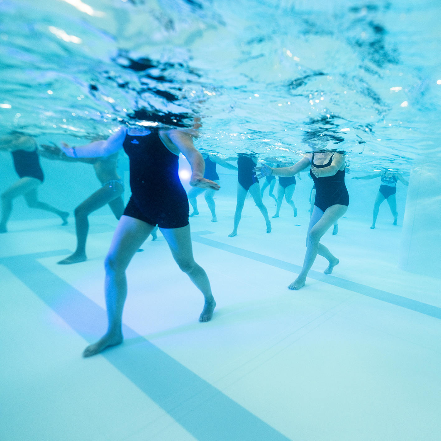 Bassin modulable avec fond et ponton mobile permettant de scinder le bassin en 2.